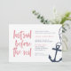 Convide os laços da noiva para uma celebração de solteira com temas de barco ou barco com estes bonitos convites para festas de solteira náuticas. O design costeiro moderno para o seu barco charter ou iate party apresenta "last sail Before the veil" (última vela antes do véu) em letras cor-de-rosa gravadas à mão, com uma corda e uma ilustração de âncora à direita.