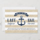 Este convite de festa de solteira, tema náutico, apresenta um fundo de brilho fino, um banner azul de marinho rústico e uma tipografia divertida que diz "Última vela antes do véu". O texto adicional pode ser adicionado à parte traseira da placa, se desejado.