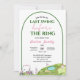 Convite de Chá de Noiva de Golfe "Último Swing Antes do Anel", Tema Clube Country Preppy Rosa e Verde, o convite do seu chá de noiva apresenta um tema de golfe preppy divertido com cores femininas suaves e elementos encantadores de clube country. O design é centralizado em torno da frase "Último Swing Antes do Anel", escrita em letras cursivas rosa elegantes, combinada com tipografia verde limpa que destaca o tema inspirado no golfe.