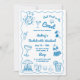 Adicione um toque lúgubre e lúgubre à sua celebração com este último brinde Whimsical Desenhado à Mão No Convite Final de Semana Azul da Bachelorette Oceânica. Adorado com ilustrações charmosas e detalhes costeiros da brisa, ele captura perfeitamente o espírito sem-cuidado de um envio à beira-mar. Ideal para retretos de praia, embrulhos costeiros, ou uma fuga de fim de semana do pôr do sol com a tribo da noiva, este convite dá o tom para uma reunião divertida e inesquecível da costa.