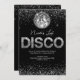 Uma divertida discoteca com tema de despedida de solteira convite e itinerário. Por favor, note que os detalhes de brilho prateado são simulados.