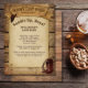 Arrume pó com o último convite da despedida de solteiro do Groom! Apresentando um fundo de madeira rústico, um centro de pergaminho castanho-claro, um chapéu de cowboy no topo, e botas no fundo, este design estabelece o tom perfeito para um tiro ocidental selvagem. Personalize o texto para dizer "Saddle Up Boys, It's Last Ride" [Nome]" — perfeito para personalizar com o nome, a data e os detalhes da festa do noivo. Excelente para países, rodeios ou partidos de solteiro de temas ocidentais.