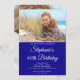Crie o seu próprio convite de celebração de aniversário de 40 anos de marco de na moda, 5 horas por dia, 7 dias por semana, com uma foto de orientação de retrato de formato paisagem na frente e uma foto de orientação de retrato de comprimento de cheio no verso. Personalize as fontes de convite com cor branca ou estilos. Fabuloso convite de 50 anos para seu melhor amigo com duas fotos. Tendy ultramarine azul com tipografia de fontes brancas.