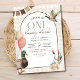 Primeiro Convite de Aniversário - Modelo editável Comemora seu primeiro aniversário com este charmoso convite do "Pato Sortudo"! Apresentando um design de aquarela macia com patos adoráveis, balões pastéis e elementos rústicos do país, este convite é perfeito para uma fazenda, floresta ou festa de aniversário inspirada na natureza.
