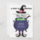 Um Bebê está criando o Chá de fraldas de Halloween convidando com chapéu de bruxa, caldeirão, pés perversos e teia de aranhas. Convites de chá de bebê de outono divertido.