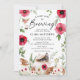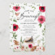 Um adorável convite para chá de fraldas de chá da tarde. Design apresenta belas flores vermelhas de papoila com verde como decoração floral. Bons animais de pelúcia e criaturas da vida selvagem se encaixam entre um sorvete decorativo. O modelo personalizável é fácil de usar e criará o cenário perfeito para um chá de tarde com as novas mamães!