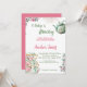 Modelo de convite de festas de chá verde e chá de fraldas cor-de-rosa. Pote de chá e chá de fraldas de chá.