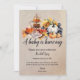 Estes convites para o chá de chá de fraldas de outono incluem elementos de Watercolor que lhes dão um sentimento aconchegante e elegante. O design inclui abóboras brancas e laranja, girassóis e folhagem de outono. Localizar itens correspondentes no meu compro.