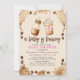 Celebrar a mãe a ser com isto Um bebê está a criar Chá de fraldas para a Garota do Café! Este convite apresenta ilustrações em aquarela de uma garrafa de bebê, café gelado, grãos de café e manchas de café em fundo bege. Personalize-o para as suas necessidades.