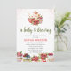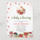 Um Bebê está criando flores vermelhas O convite para o Chá de fraldas de chá apresenta um belo design de festas de chá com flores vermelhas atordoantes, acompanhado por deliciosas indulgências açucaradas e cupcake as matizes moles da arte aquática.