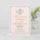 Bonito, elegante, rosa e azul "Um bebê está se preparando" Convite para o Chá de fraldas da festa do chá com aquarela azul e bule branco em um chão rosado e roxo.