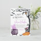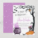 Um bebê está se preparando! Este design bonito de chá de fraldas apresenta uma cena de aquarela pintada à mão de um caldeirão borbulhante com fumaça roxa e um gatinho vestindo o chapéu de bruxa sobre uma abóbora laranja. Ao colocar a cena, há uma árvore negra brilhante curvada em volta do lado direito do cartão, com uma lanterna pendurada em um dos ramos. No canto superior esquerdo, há quatro morcegos voadores. O convite começa com "Um bebê está se preparando..." em tipografia assustadora. Os detalhes do evento estão em letras claras sans-serif, e o nome da mãe está escrito em letras de chic script. As cartas se revertem para a mesma cor púrpura que a fumaça na frente, com estrelas brancas desenhadas à mão pontilhadas por toda a parte de trás. Optámos por mostrar um nome de mãe, mas este convite pode ser facilmente personalizado para incluir os nomes dos dois pais num chá comum. O tema roxo é perfeito para um chá infantil de outubro. Personalize este convite para seu gosto usando a ferramenta de design amigável do Zazzle. Uma versão neutra do gênero desta design está disponível em nossa loja. Para quaisquer pedidos ou perguntas personalizados, por favor, contacte-nos, apenas note que os pedidos existentes não podem ser modificados, por isso não se esqueça de nos contactar primeiro!