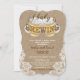 Um Bebê é design de cartão para uma festa de Chá de fraldas rústica, com cantos de rendas, dois pints e um lindo bebê A é uma tipografia de BREWING, em um fundo de burlap. Use a ferramenta Personalizar para adicionar suas informações. Veja também a Coleção de Chás de fraldas.