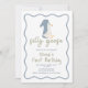 Um ganso de bobo! primeiro aniversário com ganso, um retângulo azul poeirento e um texto verde de sábio.