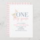 Um ganso bobo! Primeiro aniversário com ganso, xadrez rosa e azul.