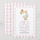 Convites Um Bobo Gingham Girl primeiro aniversario Rosa