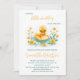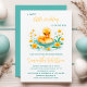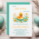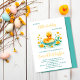 Um doce patinho está a caminho do convite de chá de fraldas com a ilustração de um lindo pato-d-água, lindo, de cor-d-água, pintado em tons macios e amarelos, adequado para temas de chá de fraldas de menino, menina ou neutro em relação ao gênero.
