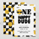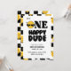 Um Cara Feliz Checkered Happy Emoji primeiro aniversario Convite Celebrar seu grande dia com o nosso convite de primeiro aniversario emoji feliz! Apresentando legal emoji vestindo vidro solar