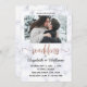 Convide todos para o seu maravilhoso casamento com esta carta simples e elegante. Selecione uma das fotos mais bonitas de vocês juntas. A palavra "casamento" está em estilo caligrafico/manuscrito cheio de efeitos de ouro-rosa.