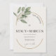Verde e quadro dourado personalizáveis e minimalísticos tipografia negra - convite para casamento. Fundo de textura bege claro. Você é cordialmente convidado a testemunhar nosso sindicato enquanto dizemos "eu faço" em um lugar atordoante adornado com folhas verdes de eucalipto e uma elegante estrutura de ouro. Nosso casamento será uma celebração simples e elegante com uma dica de glamour e charme.