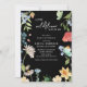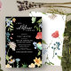 Um tema de chá de fraldas floral de flor silvestre perfeito para uma mamãe a ser? Este belo floral silvestre apresenta um belo buquê de flores silvestres em vermelho, amarelo, esbranquiçado e azul, borboletas de flores silvestres de aquarela sobre fundo preto. No verso, você encontra um padrão floral fofo com um fundo branco.