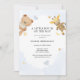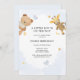 Um garotinho está a caminho do chá de fraldas dos meninos com ursos bonitos de pelúcia, estrelas, meia lua, almofadas de coração de pasto, e fundo de pelúcia. Adicione facilmente seus detalhes clicando no botão "Personalizar" acima