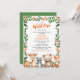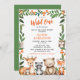 Um pequeno Wild One está a caminho - Convite para Chás de fraldas de animais florestais! Os animais de floresta costeira temem o convite para chá de fraldas com ilustrações de um gambá, pomada, urso, raposa, guaxinim, rato e coruja na cena da floresta. Animais de floresta divertidos e brincalhões fazem o chá de fraldas ideal.