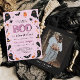 Perfeito para o tema do chá de fraldas de Halloween roxo e preto! Este convite é ideal para aqueles que buscam ideias chás de fraldas assustadoras e ideias chás de fraldas de outubro. Combina perfeitamente o encanto de uma menina chá com ideias de gótico e chá de fraldas gótico. Quer você esteja planejando um chá de fraldas neutro em relação ao gênero ou abraçando ideias chás de fraldas pervertidas, este convite serve a todos. Também inclui sotaques cor-de-rosa para aqueles que exploram ideias de chás de fraldas com tema de Halloween com um toque de rosa. Torne o seu chá de fraldas de Halloween realmente memorável com este design único e assustador!