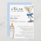 Um Tini Está No Caminho Convite Azul ao Chá de fraldas Martini com Código QR - Um simples convite para chá de fraldas de aquarela para um bebê. Apresentando caligrafia de script e fonte de bloco elegante. Uma ilustração aquosa de um martini sujo com duas azeitonas e um arco azul coquetel enfeita o canto superior direito, enquanto uma ilustração aquosa de uma garrafa de bebê enfeite o canto inferior direito. Edite este modelo de convite de chá de fraldas com seus próprios detalhes de evento. Todo texto é editável. Facilite o acesso dos hóspedes ao registro do seu bebê adicionando seu site de registro do bebê ao modelo de código QR na parte traseira do convite. Também disponível como um download digital instantâneo, uma forma ecologicamente correta de enviar convites via texto, email ou mídia social.