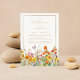 Uma Pequena Chá de fraldas de Flores Selvagens Coloridas Flores Selvagens Chamadas para Prados do País apresenta flores bonito em cor laranja, amarela, roxa e rosa sobre um fundo branco com suas informações de Chá de fraldas no centro. Disponível como um convite em papel físico, bem como um convite digital compartilhável e que pode ser baixado instantaneamente. Projetado para você pelo Evco Studio www.zazzle.com/store/evcostudio