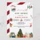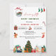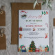 Feliz Pequeno convite Chá de fraldas com um tema tradicional de inverno e caligrafia fina. Design neutro por gênero com aquarela árvore de Natal, pinos cones, veículo de Natal, Papais noeis e pínus. O chá de fraldas é escrito em tipografia manuscrita, e o modelo está pronto para você adicionar os detalhes do convite do chá.