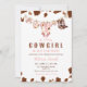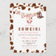 Este adorável convite apresenta uma pintura aquosa de roupas de menina penduradas em uma linha de roupa, incluindo um pijama de impressão de vaca rosa, bíblia, botas e pacificador. A linha de roupa é limitada por manchas de impressão de vaca marrom. O estilo é bonito e feminino. Se precisar de outro produto ou personalização correspondente, entre em contato comigo.