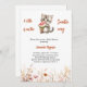 Um fundo branco chic. Decorado com um gatinho fofo, gato comendo sorvete de melancia. Beige, creme, flores silvestres rosa. Personalize e adicione o nome da mãe a ser e os detalhes da festa. Texto: Um Docinho está a caminho.
