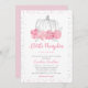 muito adorável e fofinho cor-de-rosa, chá de fraldas brilhante convite elegante moderno A Little Pumpkin Girl Chá de fraldas Convite para que você possa mudar a cor de fundo como quiser e mudar as fontes