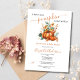 Uma abóbora doce está a caminho do convite para chás de fraldas. O tema é abóboras laranja no outono com flores e verde. Todos os campos são editáveis para o seu evento.
