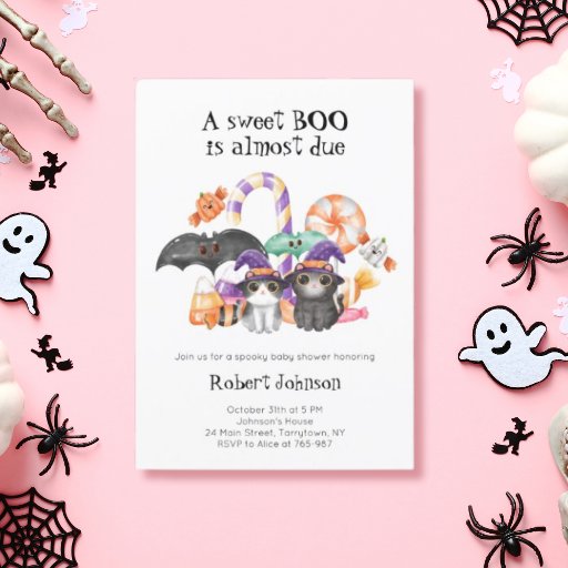 Alegria no nosso "convite para Chás de fraldas de Halloween-Themed Boo". Misturando temas do chá de fraldas de outono com diversão assustadora, estes convida gatinhos de vitrine em chapéus de bruxa em meio a uma cascata de truques ou doces de tratamento. Um exemplo perfeito de ideias chás de fraldas neutras em termos de gênero, eles prometem um chá cheio de boas memórias. Junte-se a nós para uma comemoração encantadoramente doce! 🐈 ⬛ 🍬
