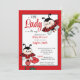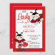 Uma senhora está a caminho do modelo de convite para chá de fraldas de de joaninha. Chá de fraldas de temas negros e vermelhos para uma menina.