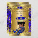Um Chá de fraldas Príncipe Muito Real. Chá de fraldas étnico afro-americano. Garoto Elegante Príncipe Real Chá de fraldas Azul, com uma Coroa em Regal Dourada. Convite de festas do Príncipe Cute Boy "é um menino". Mulheres, Convidados do Partido