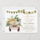 Esta design faz parte da coleção de chás de fraldas "A Wild One". Apresenta um papel de papelaria bonitinho com a aquarela de animais da selva como leões, elefantes e macacos num carro safari juntamente com folhas e flores tropicais. Perfeito para comemorações de chás de fraldas neutras em termos de sexo ou de rapaz.