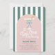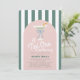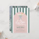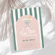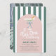 Inspirado pelo glamour eterno dos clássicos resorts de Hollywood e da vintage Beverly Colinas, este convite de chá de fraldas "um tini está a caminho" mostra um lutador de martini elegante com uma fita azul/arco enquadrado por um arco cor-de-rosa e faixas verdes ousadas — evocando palmeiras, coquetéis e sofisticação solta. O verso apresenta folhas tropicais exuberantes para um toque extra do retro paraíso. Perfeito para uma comemoração chic adulta sem esforço.