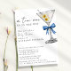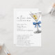 Um Tini Está No Caminho Um Simples Convite De Chá de fraldas Azul Martini - Um simples, minimalista, convite de chá de fraldas de aquarela para um bebê. Apresentando caligrafia de script e fonte de bloco elegante. Uma ilustração aquosa de um martini sujo com duas azeitonas e um arco azul coquetel enfeita o canto superior direito. Edite este modelo de convite de chá de fraldas com seus próprios detalhes de evento. Todo texto é editável. Também disponível como um download digital instantâneo, uma forma ecologicamente correta de enviar convites via texto, email ou mídia social.