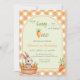 Imprima seus convidados com nosso "Cute Some Bunny Is Turning One First Birthday convidado" com um desenho de aquarela fofo de um coelho sentado em um cesto de cenouras, colocado sobre um fundo de gingham cor de laranja pálido, com uma moldura verde-pálida arqueada. Se precisar de outro produto ou personalização correspondente, entre em contato comigo.