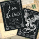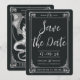 Um Conto de Amor Dragão salve a data Convite Apresentando nosso Convite "A Tale of Dragon Love" Místico Tarot-Like Salvar-the-Date. O tema é místico e romântico, com dois dragões apaixonados que lembram o cartão tarot "Os Amantes". Esse convite é perfeito para casamentos com tema místico, para entusiastas tartistas e para aqueles que adoram dragões. Os monogramas adicionam ao estilo do convite. O design apresenta um esquema simples de preto e branco, emprestando-lhe um visual vintage, elegante, com designs na frente e no verso. A redação é perfeitamente editável. Você pode alterar tamanho, cor, fonte, posição na página.