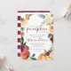 Uma pequena abóbora doce está no caminho do convite para o chá de fraldas: pintada manualmente uma borda floral de aquarela com uma abóbora laranja no canto inferior. O verso apresenta um design de listras de aquarelas em preto e branco para coordenar com o design floral no verso. A escolha perfeita para um chá de fraldas de outono.