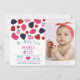 Um Doce de Morango Primeiro Aniversário Convite de Aniversário de Meninas Frutas Rosa - design de convite de festa de primeiro aniversário perfeito para menina ou menino . Parte de trás incluída.