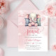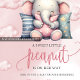 Apresentamos "Um Doce Amendoimzinho", um gráfico deliciosamente fofo e temático de elefante bebê, sentado no topo de uma nuvem celestial. Este gráfico acentua uma mistura encantadora de rosa pastel terno, habilmente feito à mão para evocar uma sensação de calor e celebração - o toque perfeito para qualquer convite de chá de bebê de menina.