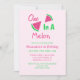 Um em um primeiro convite de aniversário melão com script cor rosa e verde