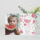 Convite de festas de primeiro aniversario de Kawaii e Melancia Fria. Design apresenta melancias de aquarela, bandeiras de férias com melancia, coração de melancia, sementes de melancia, "um de melão!" e uma fatia de melancia sorridente de aquarela. Nossa doce garotinha é uma no melão!