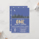 Celebre seu filho de um ano com este convite moderno e sonhador "Um Feliz Acampante Sob as Estrelas". Combinando perfeitamente um tema de acampamento com uma estética celestial de noite estrelada, este design apresenta um céu azul pervinca com uma lua crescente e estrelas.