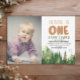 Celebre o primeiro aniversário do seu aventureiro em estilo com este convite personalizado de "Um Feliz Camper"! Apresentando um design de floresta rústico com árvores de aquarela e montanhas, este modelo permite adicionar a foto do seu filho para um toque especial. Perfeito para comemorações do tema da natureza com uma reviravolta pessoal!